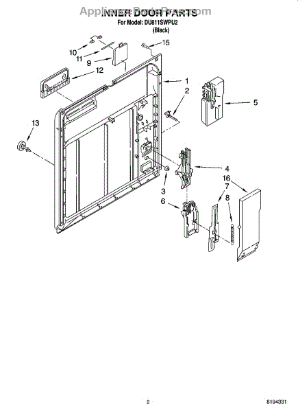 Parts for Whirlpool DU811SWPU2: 02 - Inner Door Parts