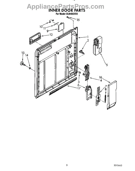 Parts for Whirlpool DU8400XX0: 03 - Inner Door Parts
