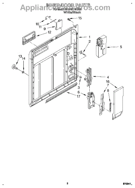 Parts for Whirlpool DU840CWDB2: 02 - Inner Door Parts
