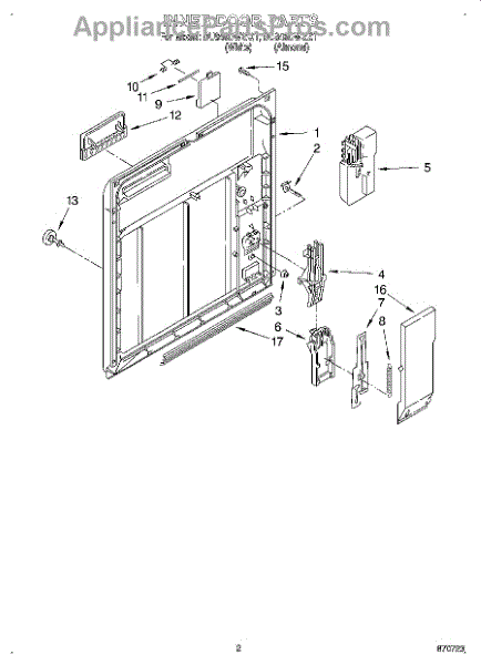 Parts for Whirlpool DU840DWGZ1: 02 - Inner Door Parts