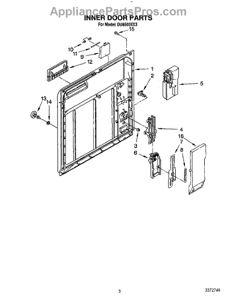 Parts for Whirlpool DU8500XX3: 03 - Inner Door Parts