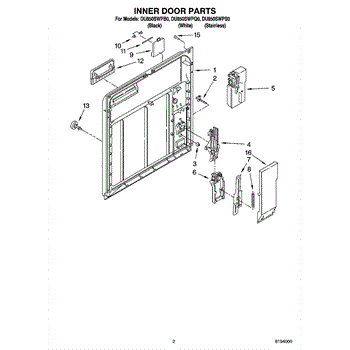 Parts for Whirlpool DU850SWPQ0: 02 - Inner Door Parts