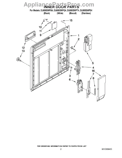 Parts for Whirlpool DU850SWPQ4: 02 - Inner Door Parts