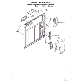 Parts for Whirlpool DU860SWSB0: 02 - Inner Door Parts