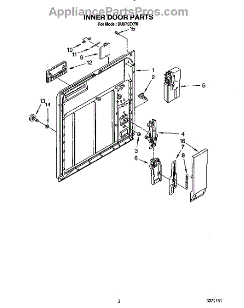 Parts for Whirlpool DU8750XY0: 03 - Inner Door Parts