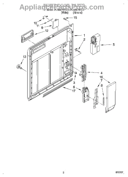 Parts for Whirlpool DU890DWGQ1: 02 - Inner Door Parts