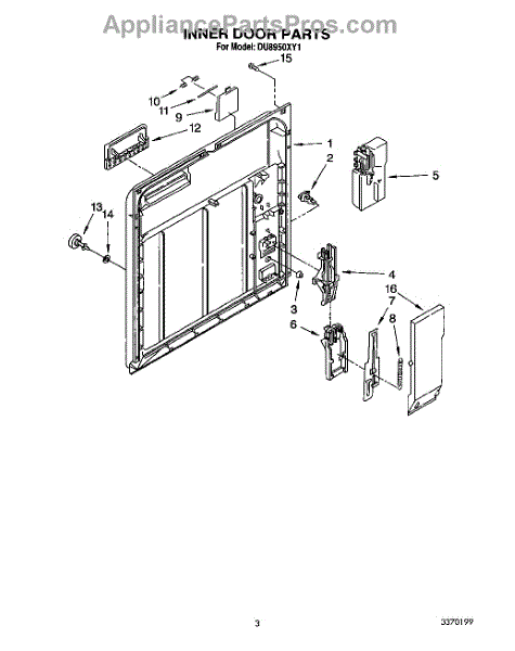 Parts for Whirlpool DU8950XY1: 03 - Inner Door Parts
