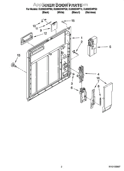 Parts for Whirlpool DU895SWPQ0: 02 - Inner Door Parts