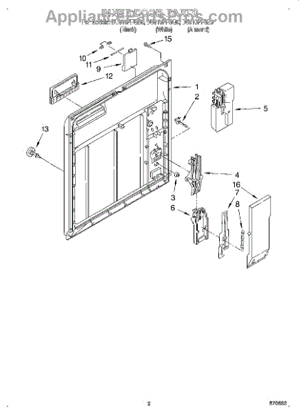 Parts for Whirlpool DU910PFGZ0: 02 - Inner Door Parts