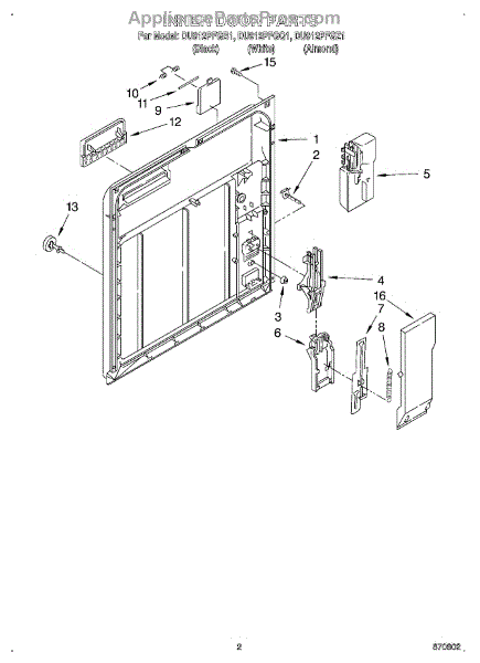 Parts for Whirlpool DU912PFGZ1: 02 - Inner Door Parts