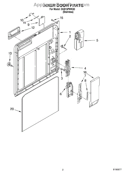 Parts for Whirlpool DU915PWKS0: 02 - Inner Door Parts