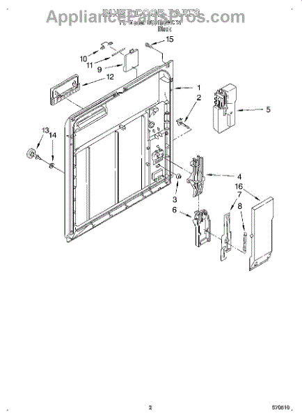 Parts for Whirlpool DU915QWDB1: 02 - Inner Door Parts
