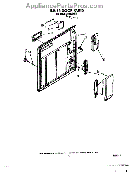 Parts for Whirlpool DU9200XX0: 03 - Inner Door Parts