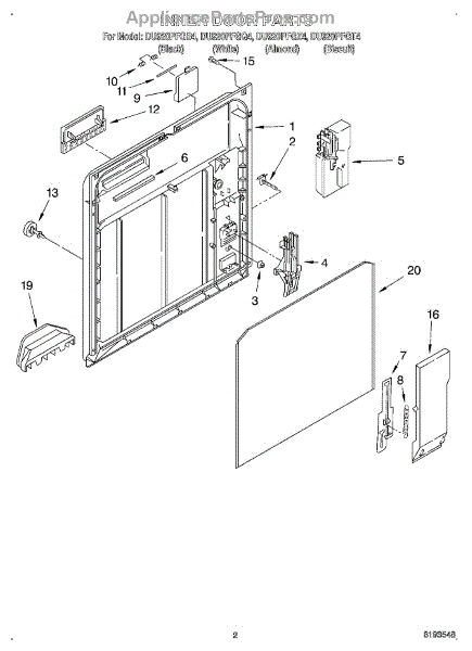 Parts for Whirlpool DU920PFGQ4: 02 - Inner Door Parts