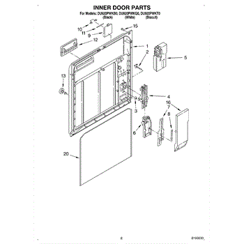 Parts for Whirlpool DU920PWKT0: 02 - Inner Door Parts