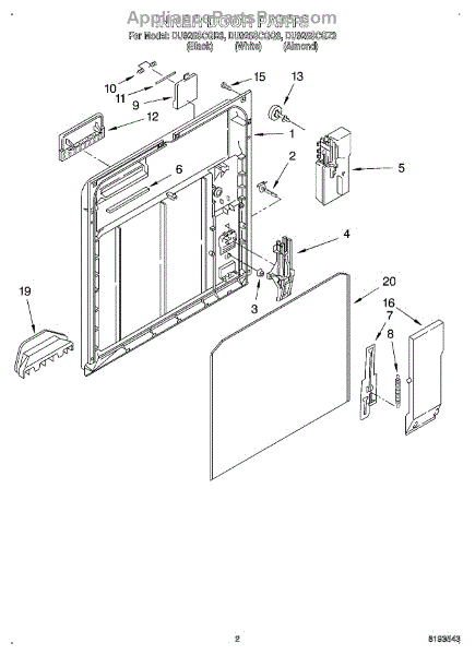 The Dispenser Lid is an OEM replacement part for Whirlpool dishwashers. Located at the top of the dishwasher door, it provides access to add detergent and rinse aid to the internal dispenser compartment below. This dishwasher soap dispenser lid is included in the dispenser cover kit 4387043. Causes of a bad dispenser lid can include wear and tear of hinge points from years of repeated openings. Cracks may also arise in the plastic material. Symptoms of a bad Dispenser Lid include:
