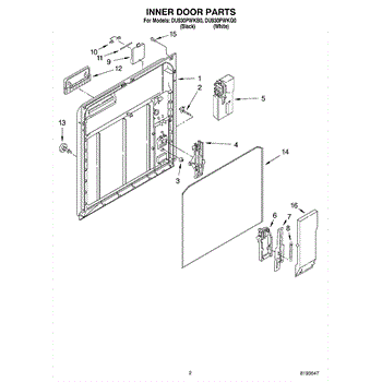 Parts for Whirlpool DU930PWKQ0: 02 - Inner Door Parts