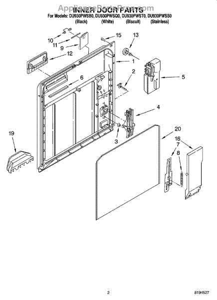 Parts for Whirlpool DU930PWSQ0: 02 - Inner Door Parts