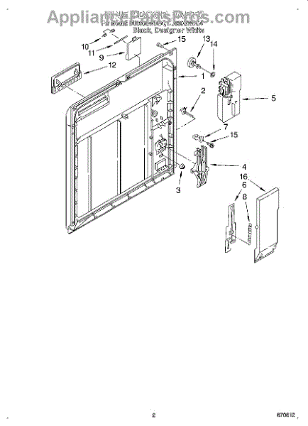 The Latch Kit is an OEM replacement part for Whirlpool dishwashers. This kit includes all the necessary components to replace or repair the latch mechanism that secures the detergent and rinse aid dispenser during the wash cycles.