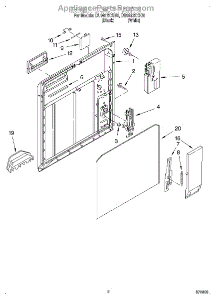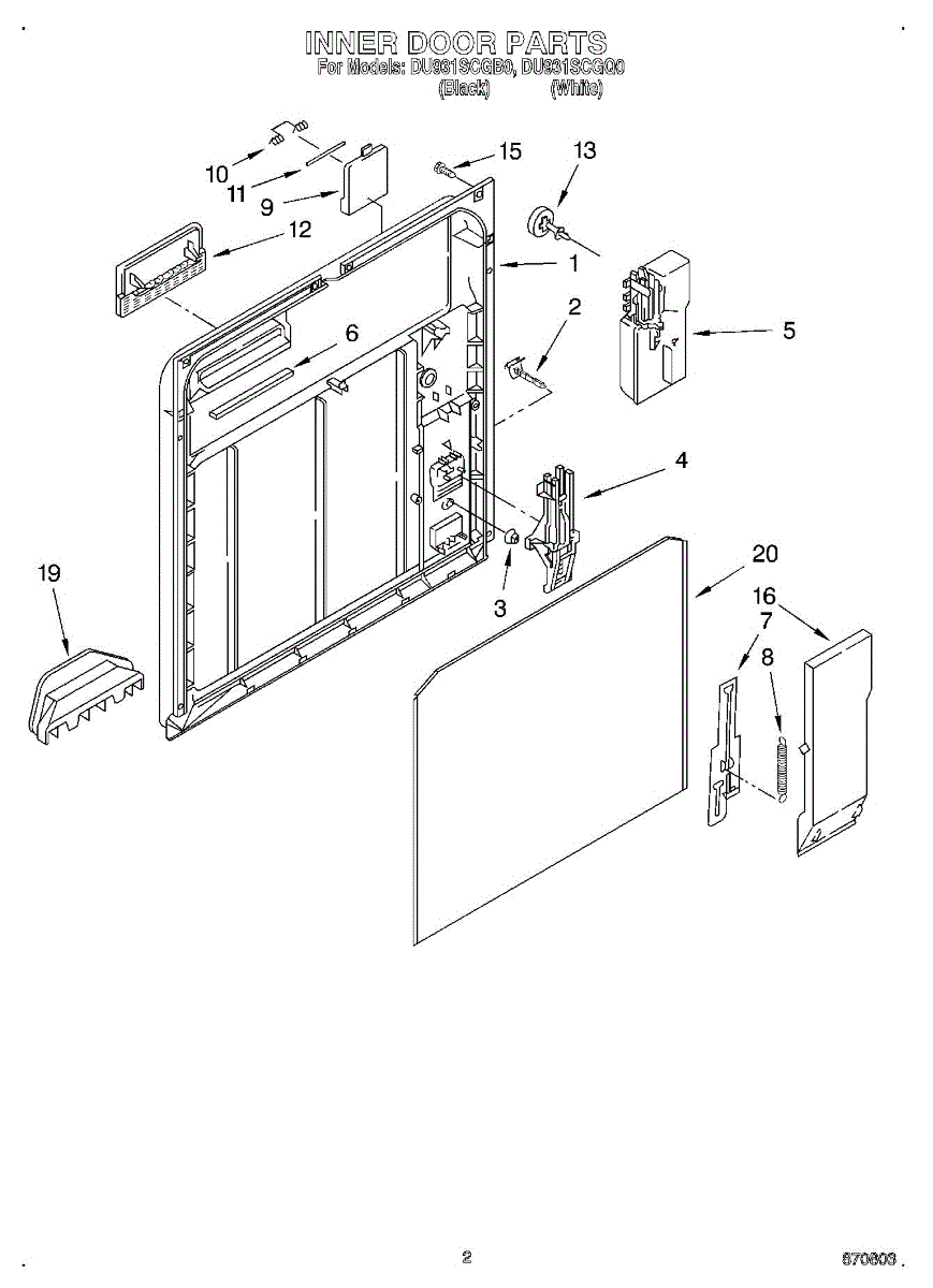 Parts for Whirlpool DU931SCGQ0: 02 - Inner Door Parts
