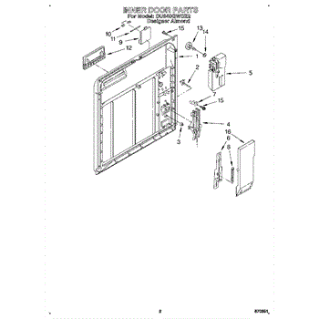 The Dispenser Lid is an OEM replacement part for Whirlpool dishwashers. Located at the top of the dishwasher door, it provides access to add detergent and rinse aid to the internal dispenser compartment below. This dishwasher soap dispenser lid is included in the dispenser cover kit 4387043. Causes of a bad dispenser lid can include wear and tear of hinge points from years of repeated openings. Cracks may also arise in the plastic material. Symptoms of a bad Dispenser Lid include: