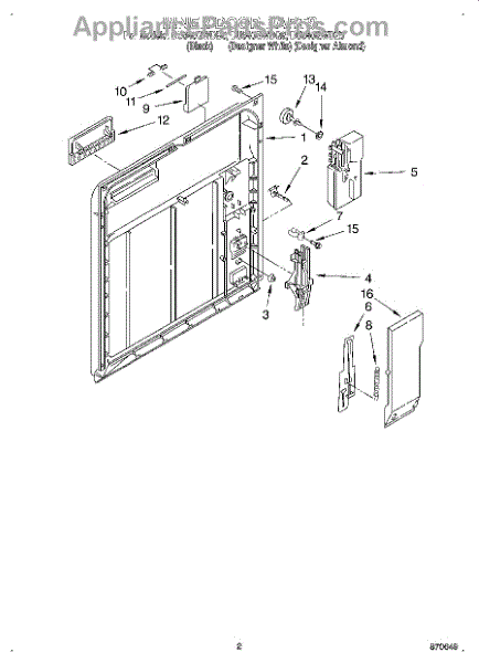 Parts for Whirlpool DU940QWDZ6: 02 - Inner Door Parts