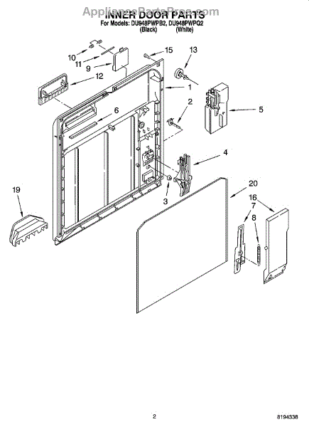 Parts for Whirlpool DU948PWPB2: 02 - Inner Door Parts