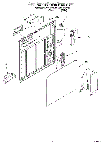 Parts for Whirlpool DU951PWKB0: 02 - Inner Door Parts