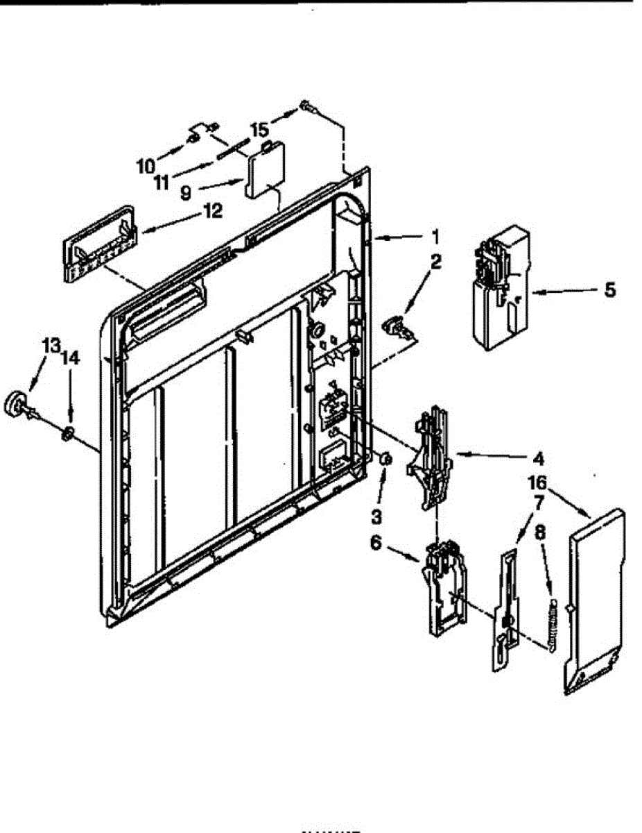 The Dispenser Cover Kit is an OEM replacement part for Whirlpool dishwashers. It includes both the outer lid that protects the detergent and rinse aid compartments as well as the latch mechanism securing it closed. This dishwasher dispenser kit included the cover, lid hinge pin, spring, snap, and latch.
