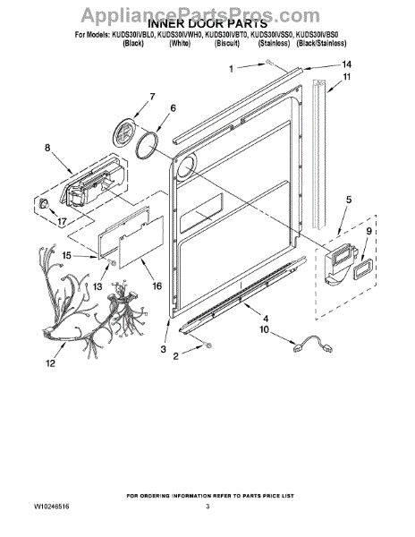 Parts for Kitchenaid KUDS30IVWH0: 03 - Inner Door Parts