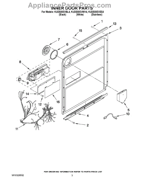 Parts for Kitchenaid KUDS50SVBL4: 03 - Inner Door Parts