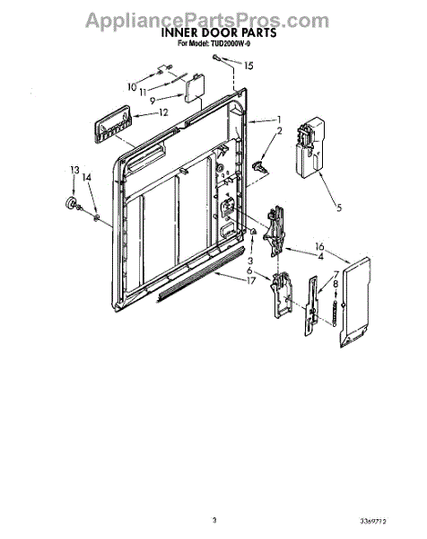 Parts for Whirlpool TUD2000W0: 02 - Inner Door Parts