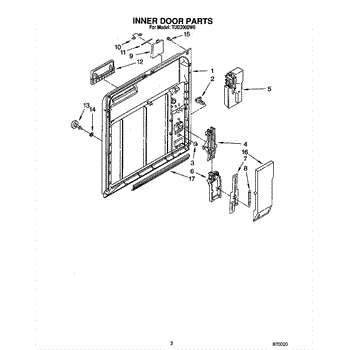 Parts for Whirlpool TUD2000W6: 03 - Inner Door Parts