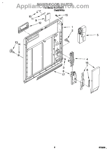 Parts for Whirlpool TUD7005Y1: 02 - Inner Door Parts