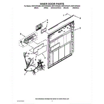 Parts for Whirlpool WDF310PAAS0: 03 - Inner Door Parts