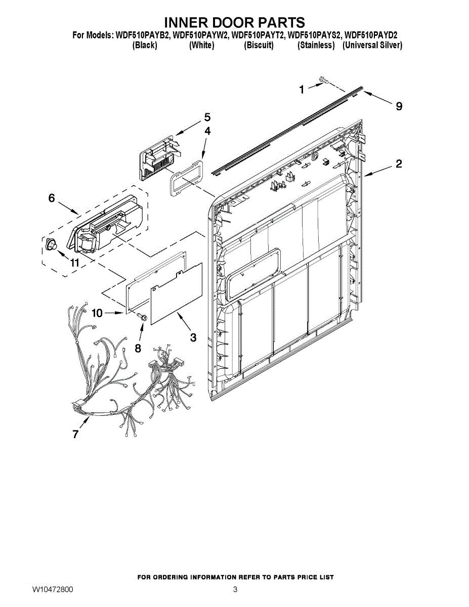 Parts for Whirlpool WDF510PAYD2: 03 - Inner Door Parts