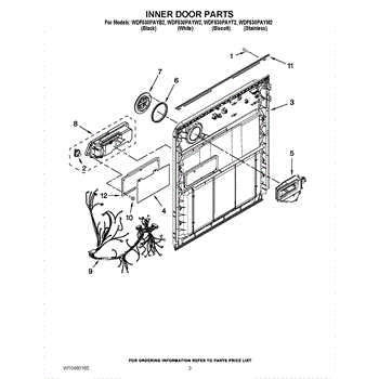 The Inner Door Panel is an OEM part for Whirlpool dishwashers. Located inside the dishwasher door, this hard-wearing panel protects internal components from impact during loading.