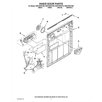 Parts for Whirlpool WDF730PAYM0: 03 - Inner Door Parts