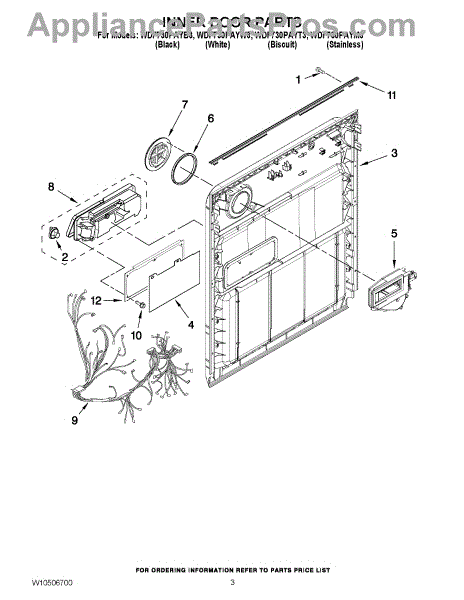 Parts for Whirlpool WDF730PAYM3: 03 - Inner Door Parts