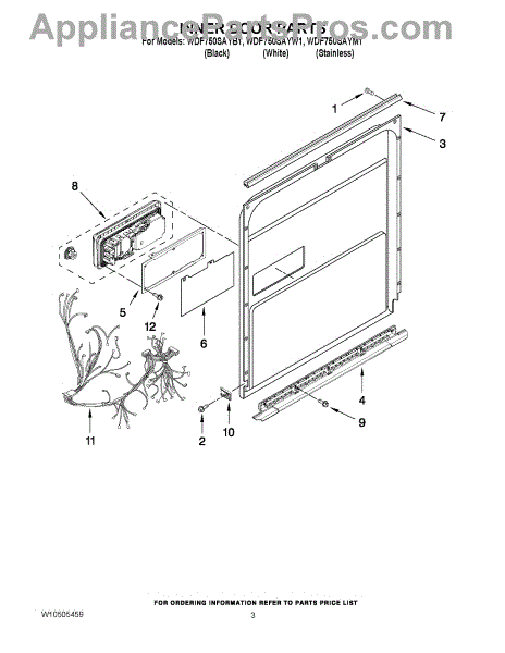 Parts for Whirlpool WDF750SAYB1: 03 - Inner Door Parts