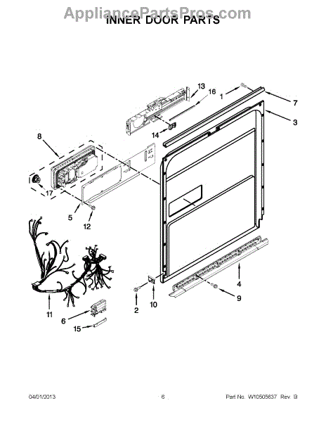 This inner door seal forms a moisture barrier between the dishwasher tub and the door assembly, helping keep wash water and steam contained. Replacing a worn seal can stop drips at the door and protect internal components.