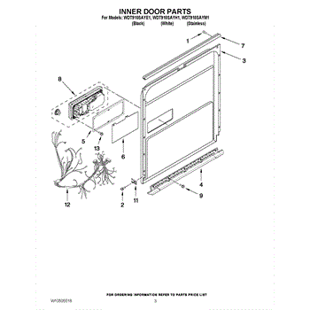 Parts for Whirlpool WDT910SAYE1: 03 - Inner Door Parts