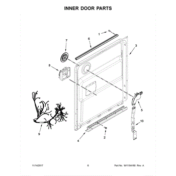 This inner door seal forms a moisture barrier between the dishwasher tub and the door assembly, helping keep wash water and steam contained. Replacing a worn seal can stop drips at the door and protect internal components.