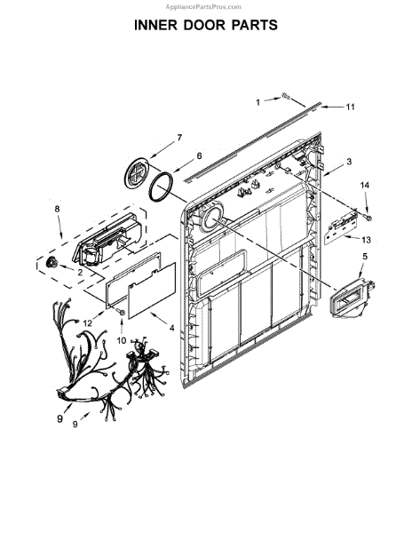 Wire harness for dishwasher electrical connections. Replaces damaged, frayed, or corroded wiring harnesses that cause connection issues in your unit.