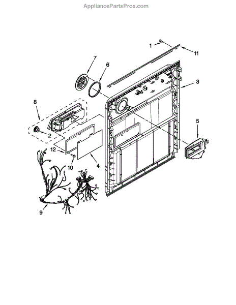 Wire harness assembly for your dishwasher. Connects electrical components to the control board. Replace if wires are frayed, damaged, or connectors broken.