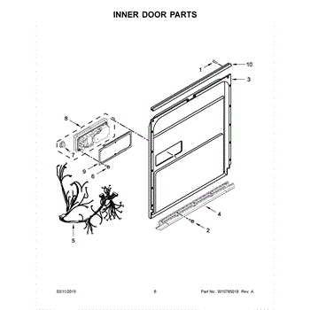 This inner door seal forms a moisture barrier between the dishwasher tub and the door assembly, helping keep wash water and steam contained. Replacing a worn seal can stop drips at the door and protect internal components.