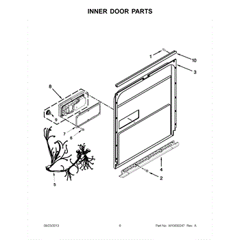 This inner door seal forms a moisture barrier between the dishwasher tub and the door assembly, helping keep wash water and steam contained. Replacing a worn seal can stop drips at the door and protect internal components.