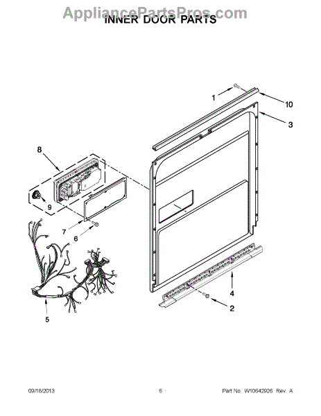 This inner door seal forms a moisture barrier between the dishwasher tub and the door assembly, helping keep wash water and steam contained. Replacing a worn seal can stop drips at the door and protect internal components.