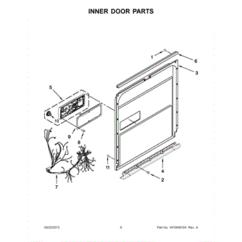 This inner door seal forms a moisture barrier between the dishwasher tub and the door assembly, helping keep wash water and steam contained. Replacing a worn seal can stop drips at the door and protect internal components.