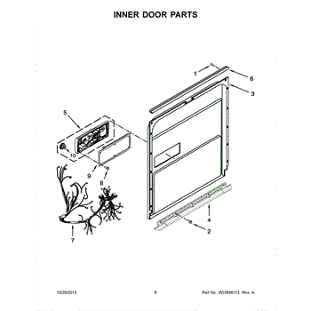 This inner door seal forms a moisture barrier between the dishwasher tub and the door assembly, helping keep wash water and steam contained. Replacing a worn seal can stop drips at the door and protect internal components.